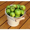 Středně velké plechové vědro s kovovým uchem a dřevěným držáčkem. Je ideální pro děti nebo pro drobné práce na zahradě. Krásně bude vypadat ve spíži plné domácí cibule a česneku.