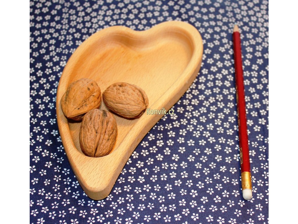 Malý talířek z poctivého kusu masivního dřeva ve tvaru srdce. Ukažte, že máte srdce na dlani!
