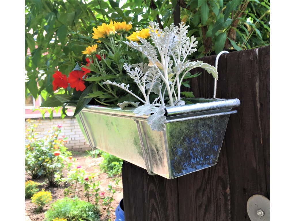Půlmetrový truhlík z opravdu silného pozinkovaného plechu, který bude díky jednoduchému designu vypadat báječně na chalupě i v moderní vile. Truhlík je opatřem pevným drátěným závěsným mechanismem, který lze pohodlně zavěsit za balkónové zábradlí.